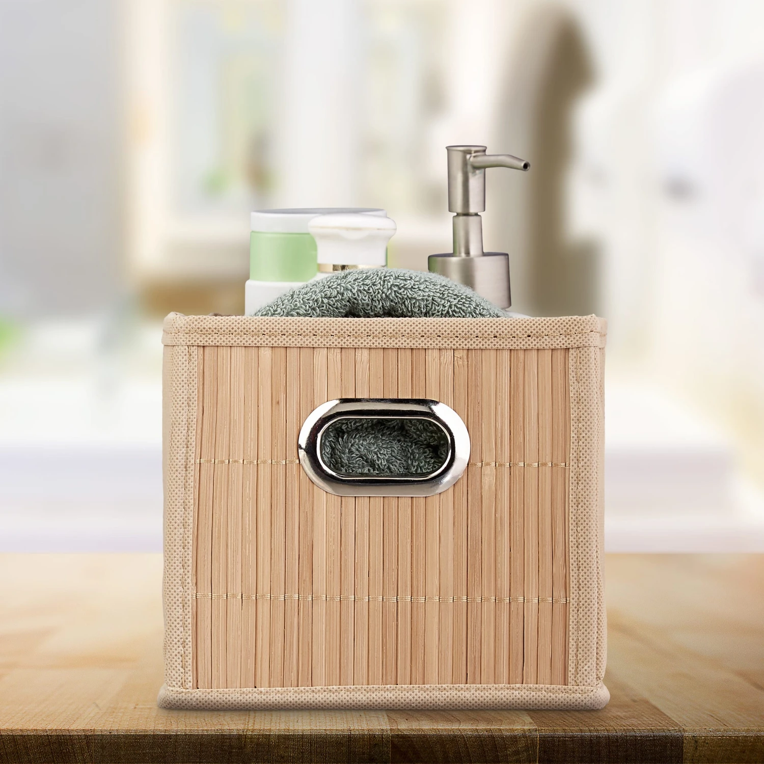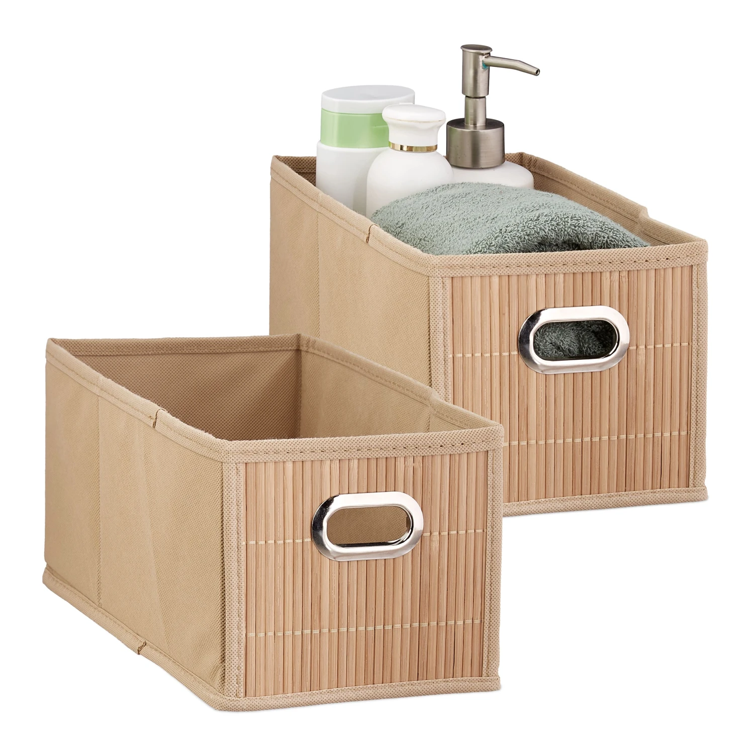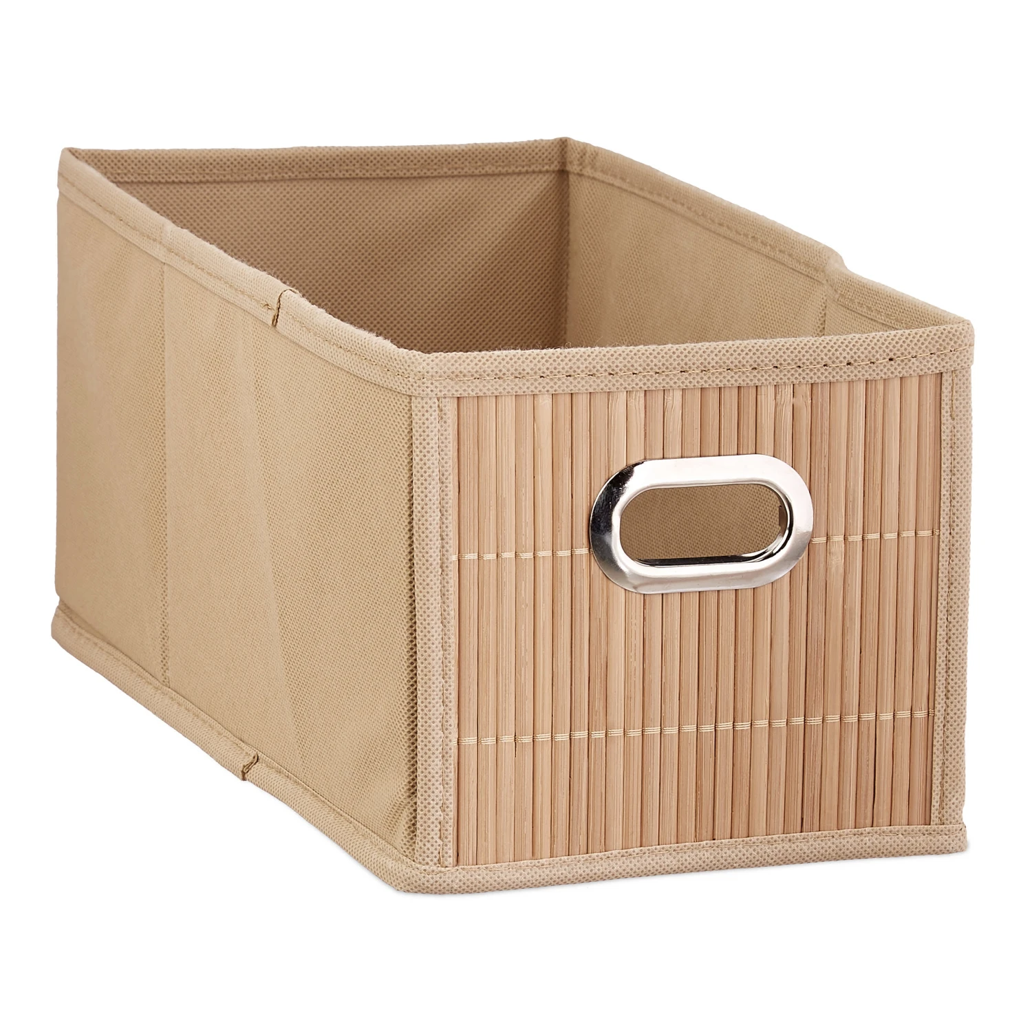 Ob für Unterwäsche im Kleiderschrank oder Accessoires in der Garderobe, im Regalkorb sind Ihre Utensilien ordentlich verstaut. Dank natürlichem Bambus-Dekor ist die Aufbewahrungsbox auch im Badezimmer gut aufgehoben. Hier dient sie zur Aufbewahrung von Badutensilien oder als Handtuchkorb. Platzieren Sie den schmalen Bambuskorb im Schrank oder Regal, wo er mit dem Eingriff einfach herausgezogen werden kann. Bei Nichtgebrauch ist das Badkörbchen im Nu zusammengefaltet verstaubar.