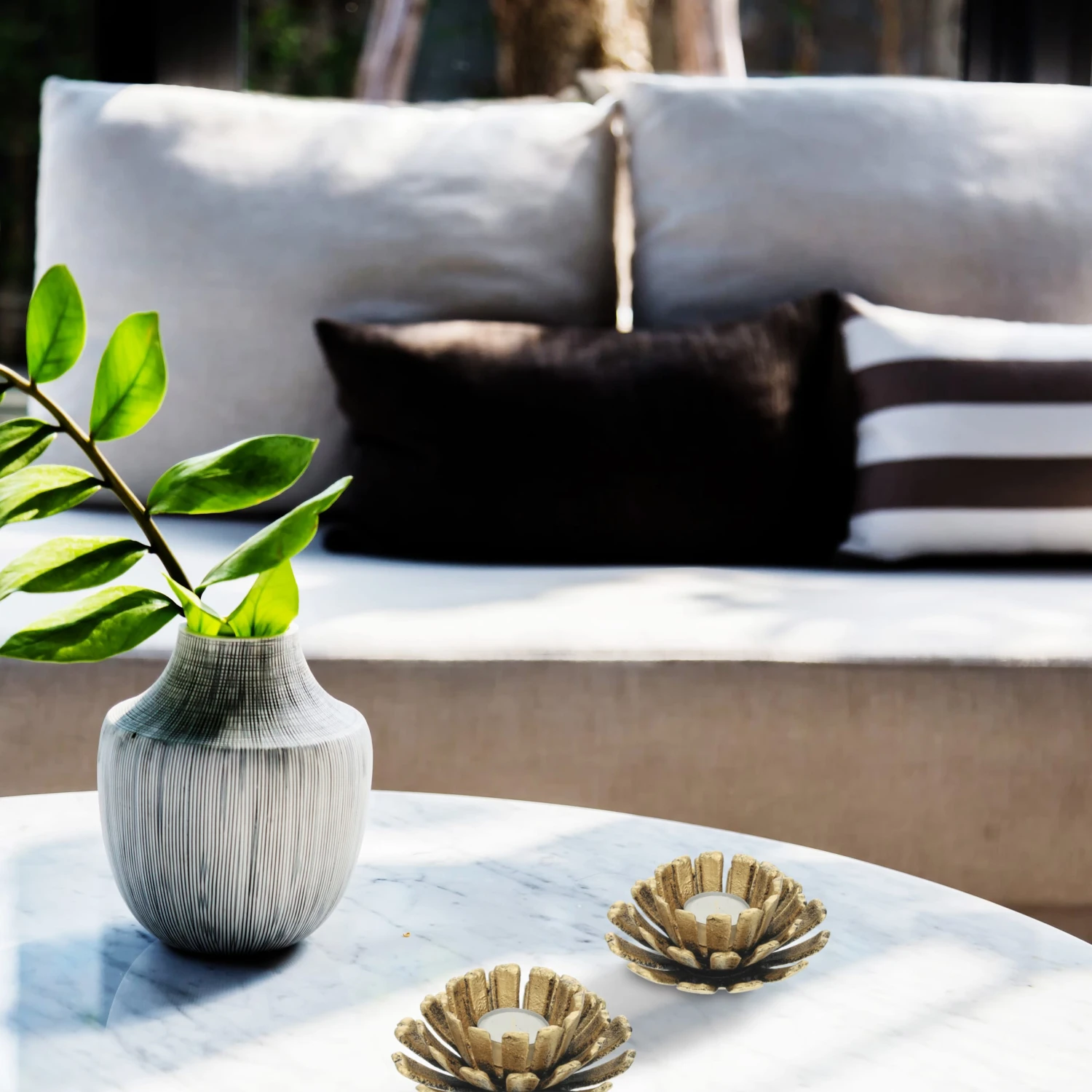 Du möchtest Deinen Garten mit einer meditativen Deko verschönern? Diese Kerzenhalter in Form einer filigranen Blüte sorgen für Ruhe und Entspannung. Im Inneren der Blume hat ein kleines Teelicht Platz. Dank der Fertigung aus Gusseisen ist die Gartendeko im 2er Set besonders robust und witterungsfest. Doch auch in der Wohnung sorgen die Teelichtständer für ein angenehmes Ambiente. So kannst Du sie beim Meditieren oder als ausgefallenes Accessoire in Deinem Wohn- oder Schlafzimmer nutzen.