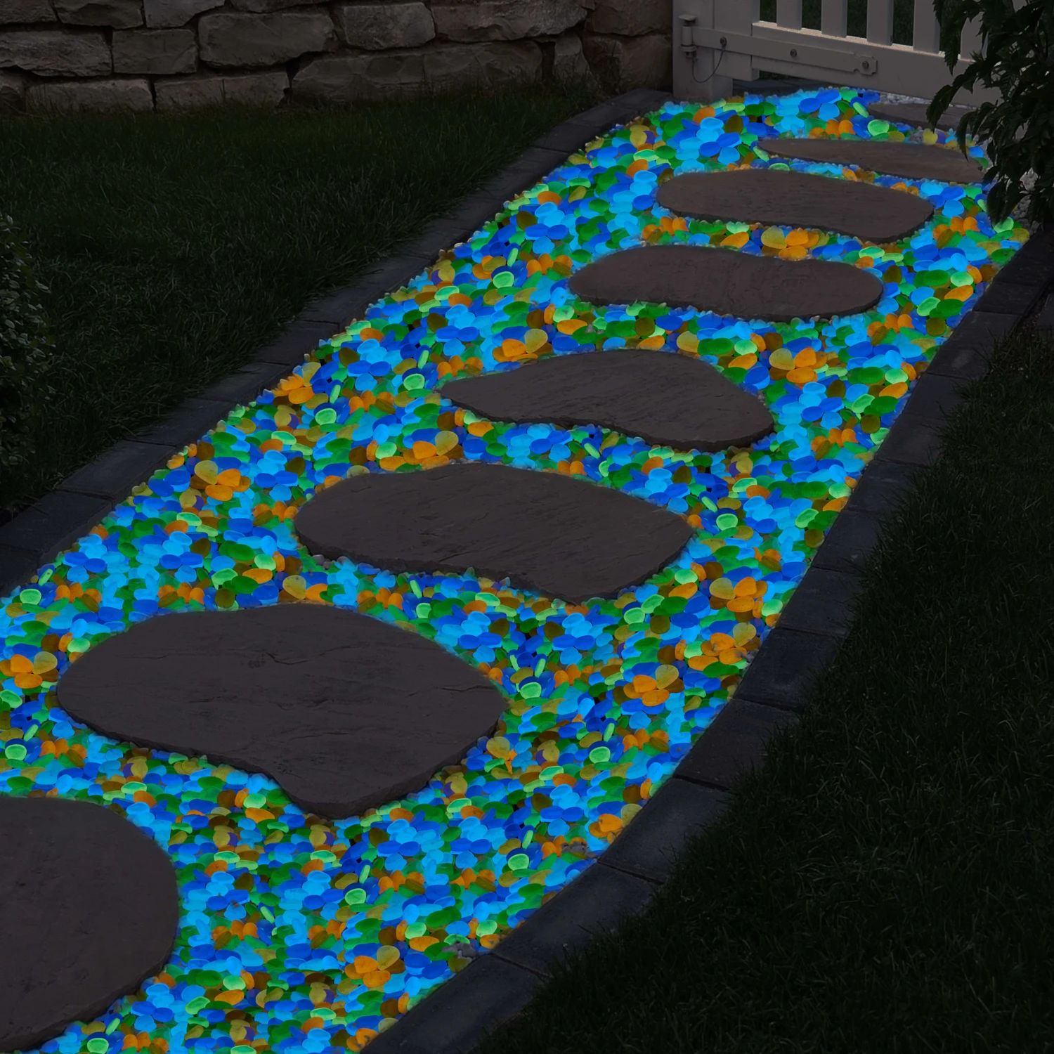 Dieses 200er Set Dekosteine ist vor allem im Dunkeln ein echter Hingucker. Tagsüber absorbieren die Ziersteine das Sonnenlicht und fangen nachts an zu leuchten. So haben Sie ein schönes Lichtspiel für Haus und Garten – und das gänzlich ohne Strom. Die Zierkiesel machen vor allem auf Gehwegen oder Beeten eine tolle Figur, sind aber auch drinnen ein dekorativer Blickfang. Verschönern Sie ganz einfach Vasen, Dekoschalen und Blumentöpfe oder auch das Aquarium mit den kleinen leuchtenden Steinen.