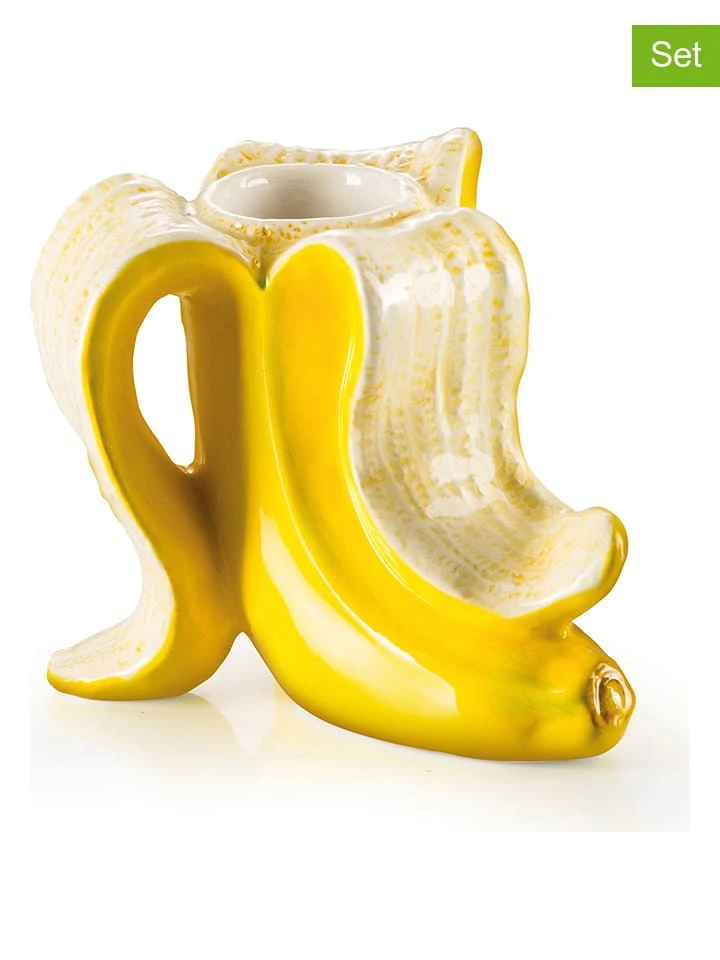 2er-Set: Kerzenhalter “Banana Romance” In Gelb – (B)7 X (H)8,5 Cm