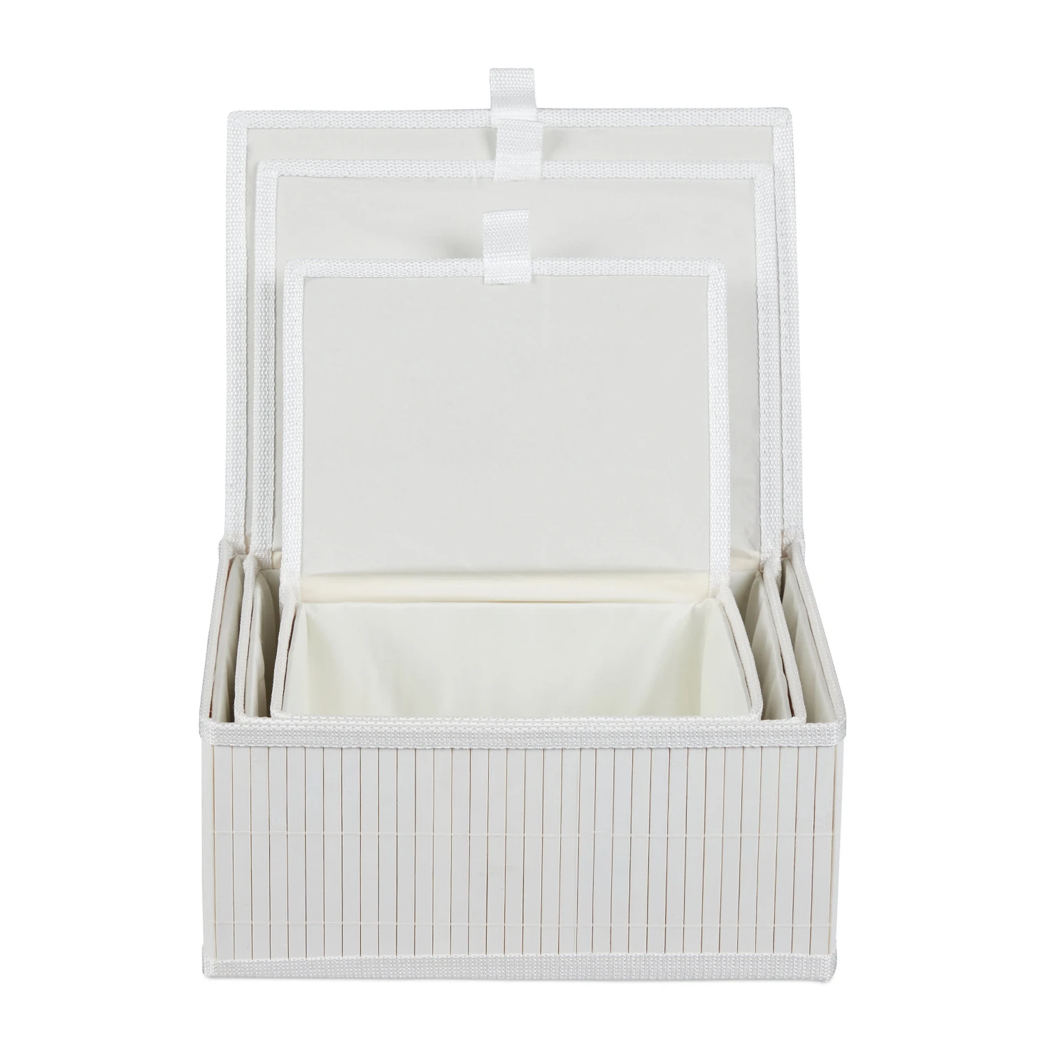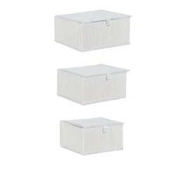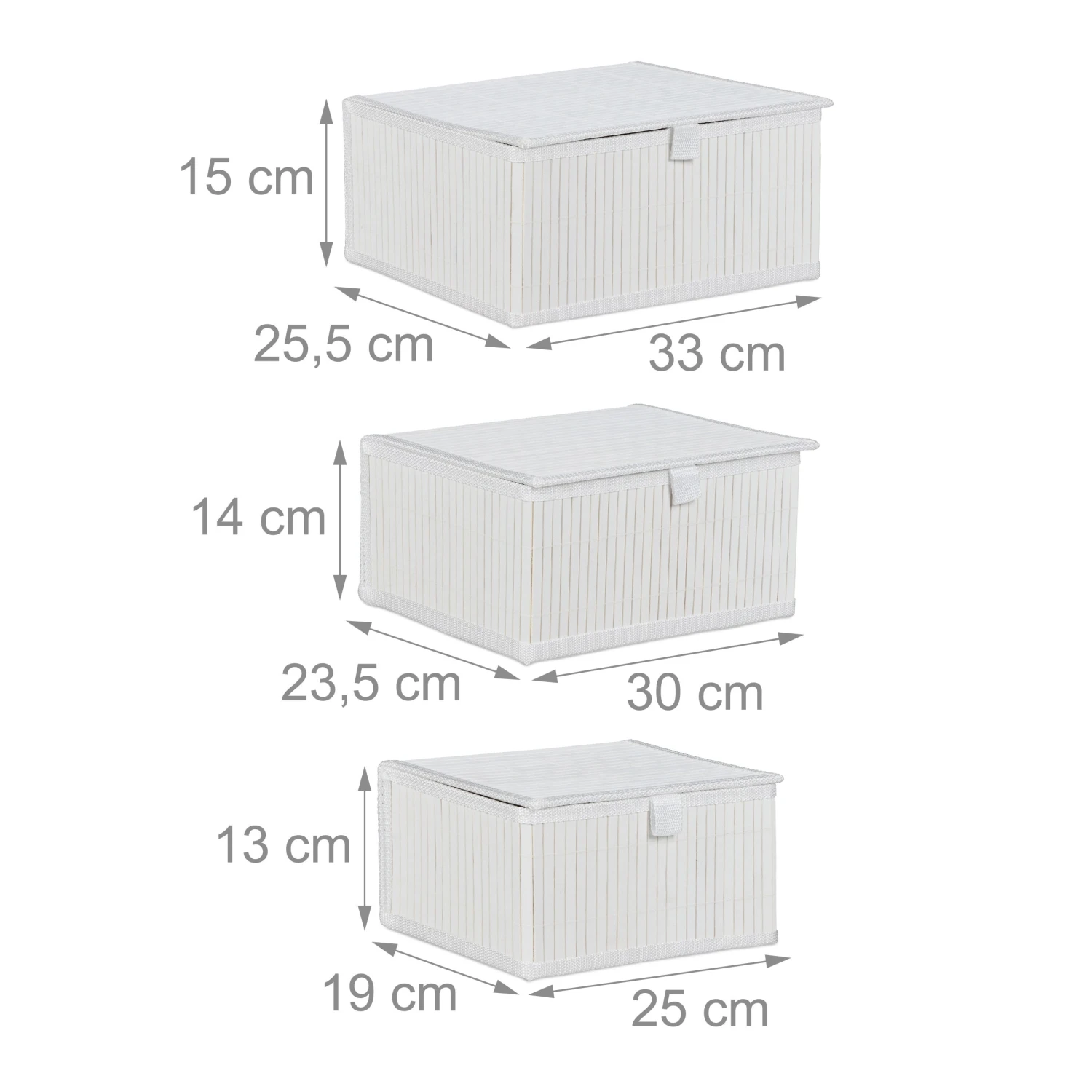 Wenn Badablage oder Wannenrand überfüllt sind, schafft der Aufbewahrungskorb fürs Badezimmer Ordnung. Der feuchtigkeitsabsorbierende Bambuskorb ist nicht nur für das Bad geeignet. Im ganzen Haus halten die Aufbewahrungsboxen die Dinge des Alltags übersichtlich an ihrem Platz. Die praktischen Dekokörbe zieren Kinder-, Schlaf- oder Wohnzimmer. Verwenden Sie das Set als Regalkorb oder Schrankbox für Socken, Accessoires und andere Kleinteile.