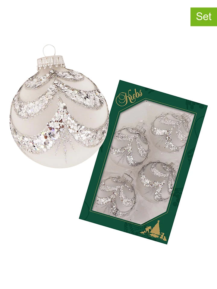 Christbaumkugeln In Weiß/ Silber – 4 Stück – Ø 7 Cm