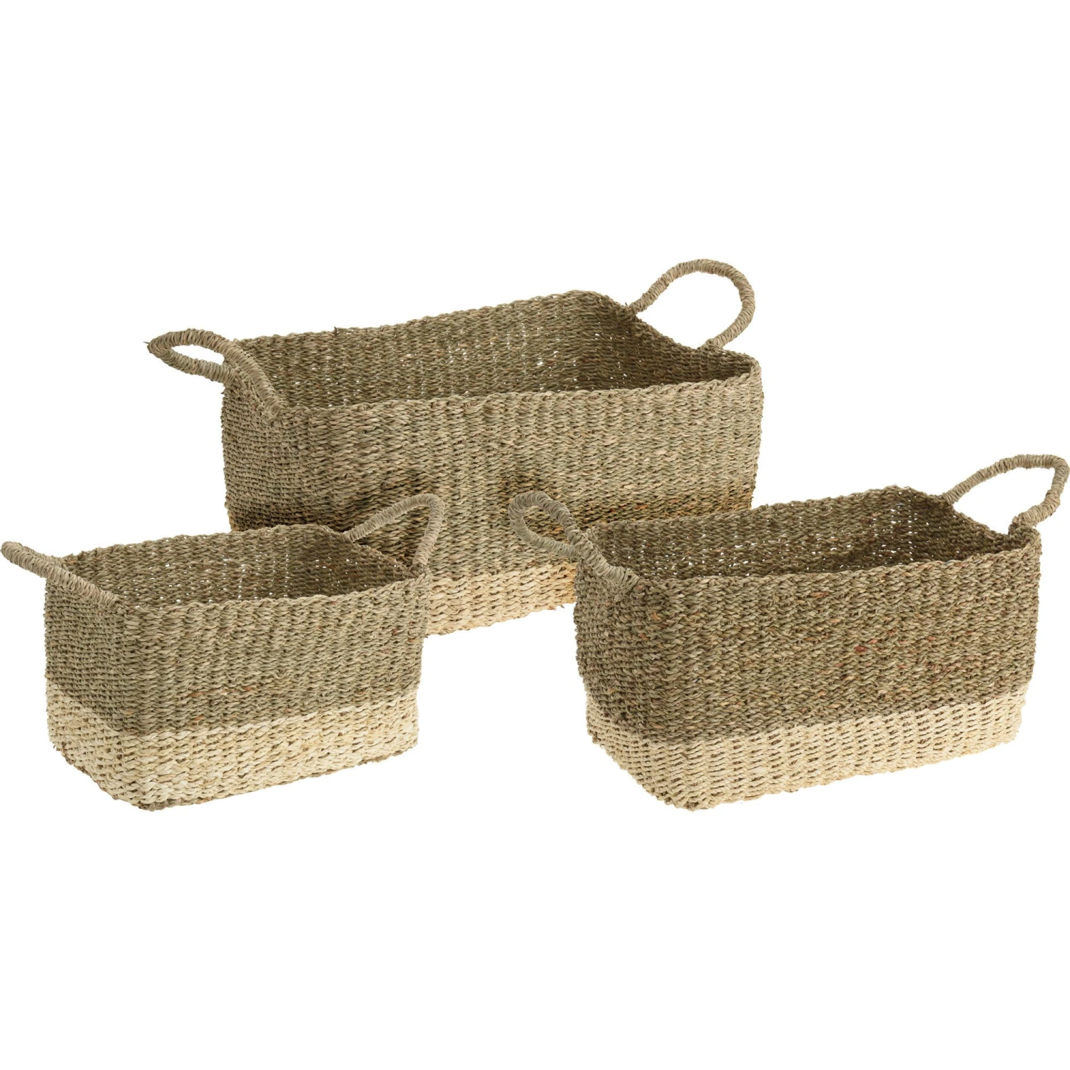 Das Set von dekorativen Körben ist ein Design der renommierten Marke Home Styling Collection. Das Set besteht aus drei Körben in verschiedenen Größen. Ihr Vorteil ist, dass leere Körbe in den anderen gesteckt werden können und viel Stauraum sparen. Der Korb ist ideal für Wohnzimmer, Küche, Teenagerzimmer oder Flur zur Aufbewahrung von Spielzeug, Essen oder Gadgets. Natürliches, luftiges Material sorgt für Trockenheit und Frische der im Inneren gelagerten Gegenstände. Der Korb besteht aus natürlichem Seegras. Sein Design ist solide, so dass es noch größerer Belastung standhält und für viele Jahreszeiten dient. Produktmaße: 38 x 22 x 26 cm