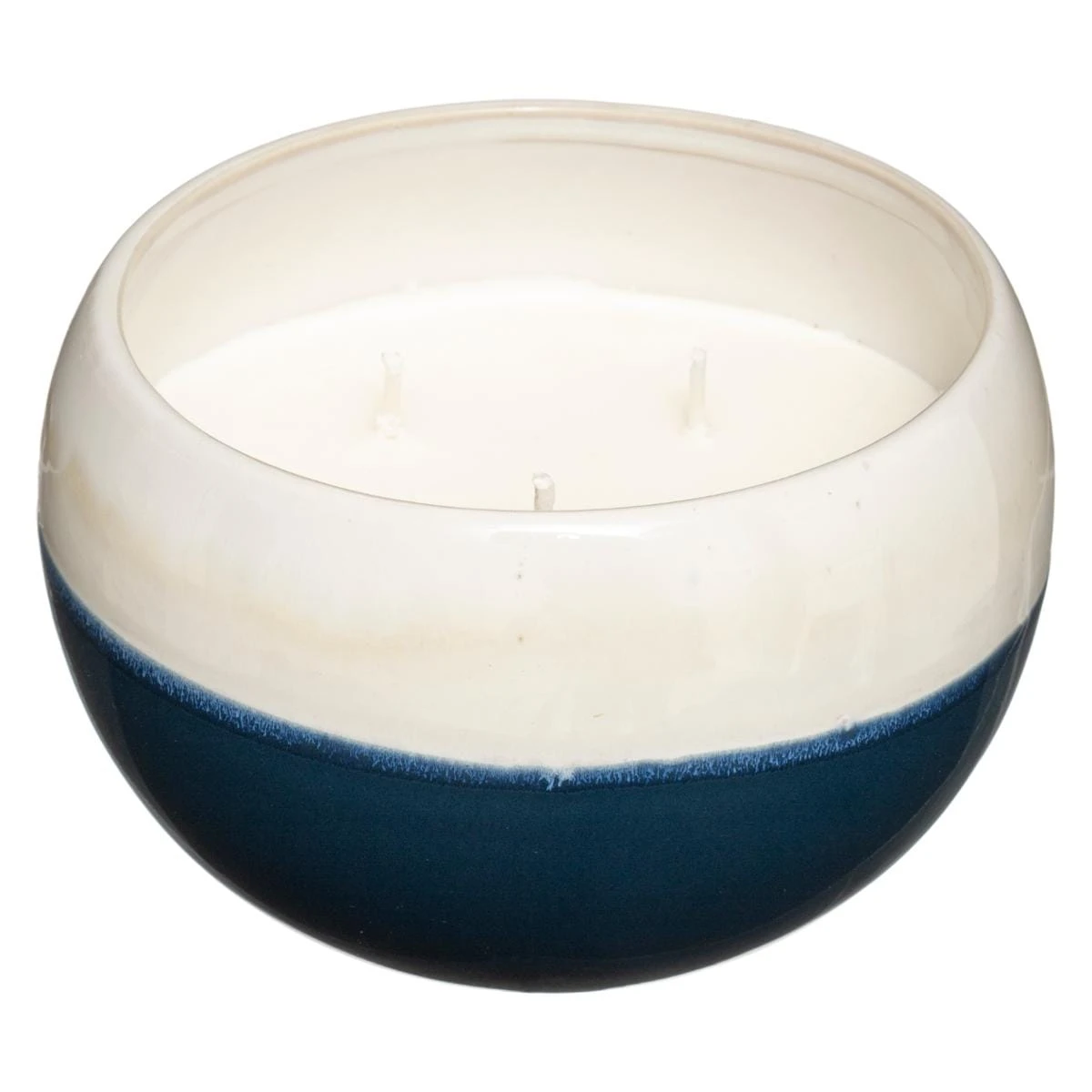 Retrostil. Die dekorative Kerze HOTEL hat ein Gehäuse in Form einer Keramikschale. Seine emaillierte Oberfläche zeichnet sich durch zwei kontrastierende Farben aus, die durch eine verschwommene Linie geteilt werden.