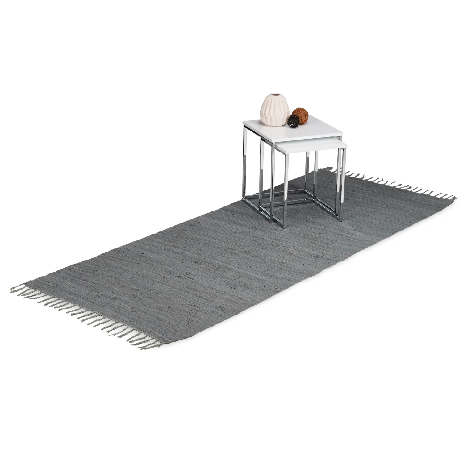 Mit diesem Flickenteppich aus 100 % Baumwolle verschönern Sie Ihr Wohnambiente im Handumdrehen. Je nach Wohnsituation können Sie zwischen 2 verschiedenen Größen (70 x 140 cm und 80 x 200 cm) und 3 unterschiedlichen Farben (Grau, Blau, Rot) wählen. Die einfarbigen Flickenteppiche sind handgefertigt und machen jeden einzelnen Teppich zum ultimativen Unikat.