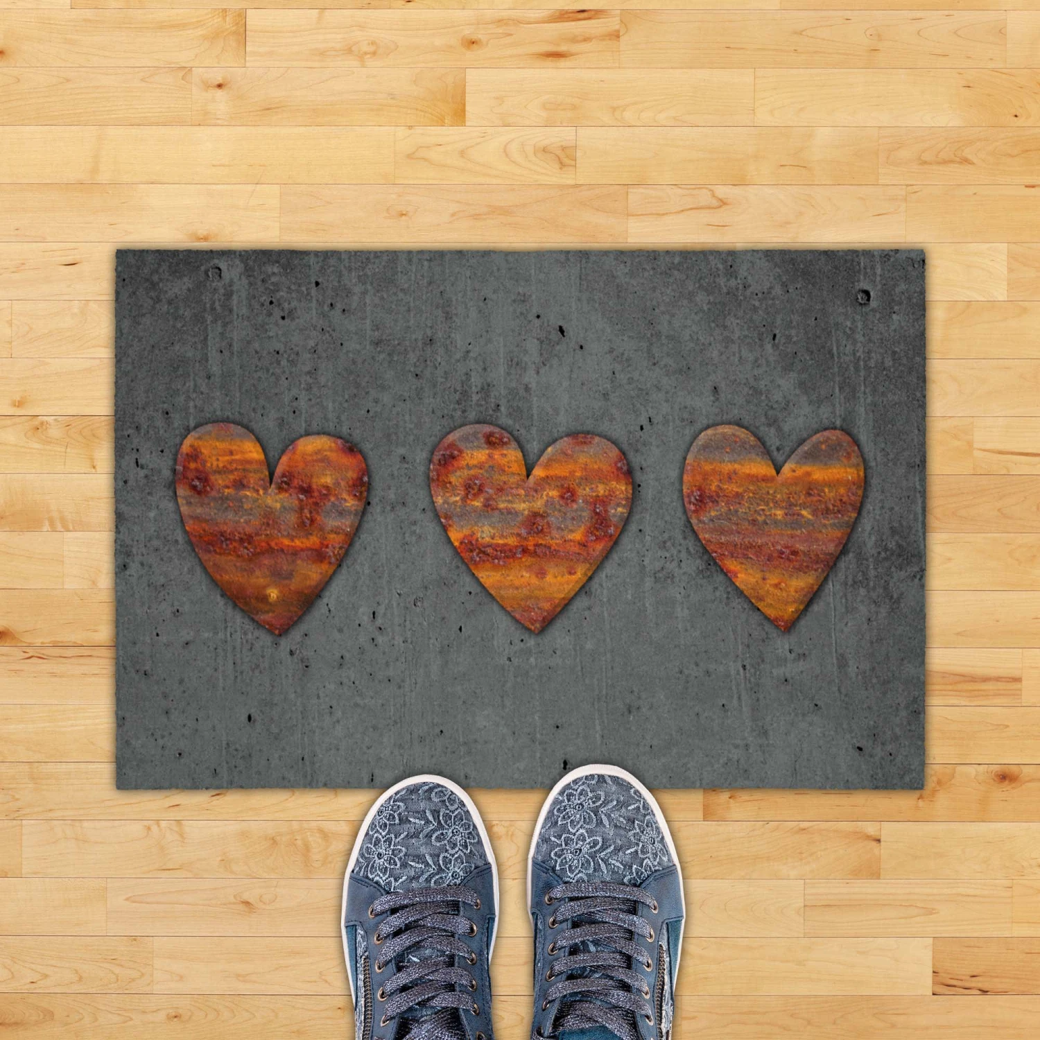 Die Fußmatte besticht durch Ihr schlichtes Herz-Motiv und verleiht Ihrem Wohnbereich das gewisse Etwas.