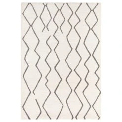 Der ELLE Decoration Design Teppich Vienne in Creme Grau verzückt durch seine asymetrische und kontrastreiche Musterung.