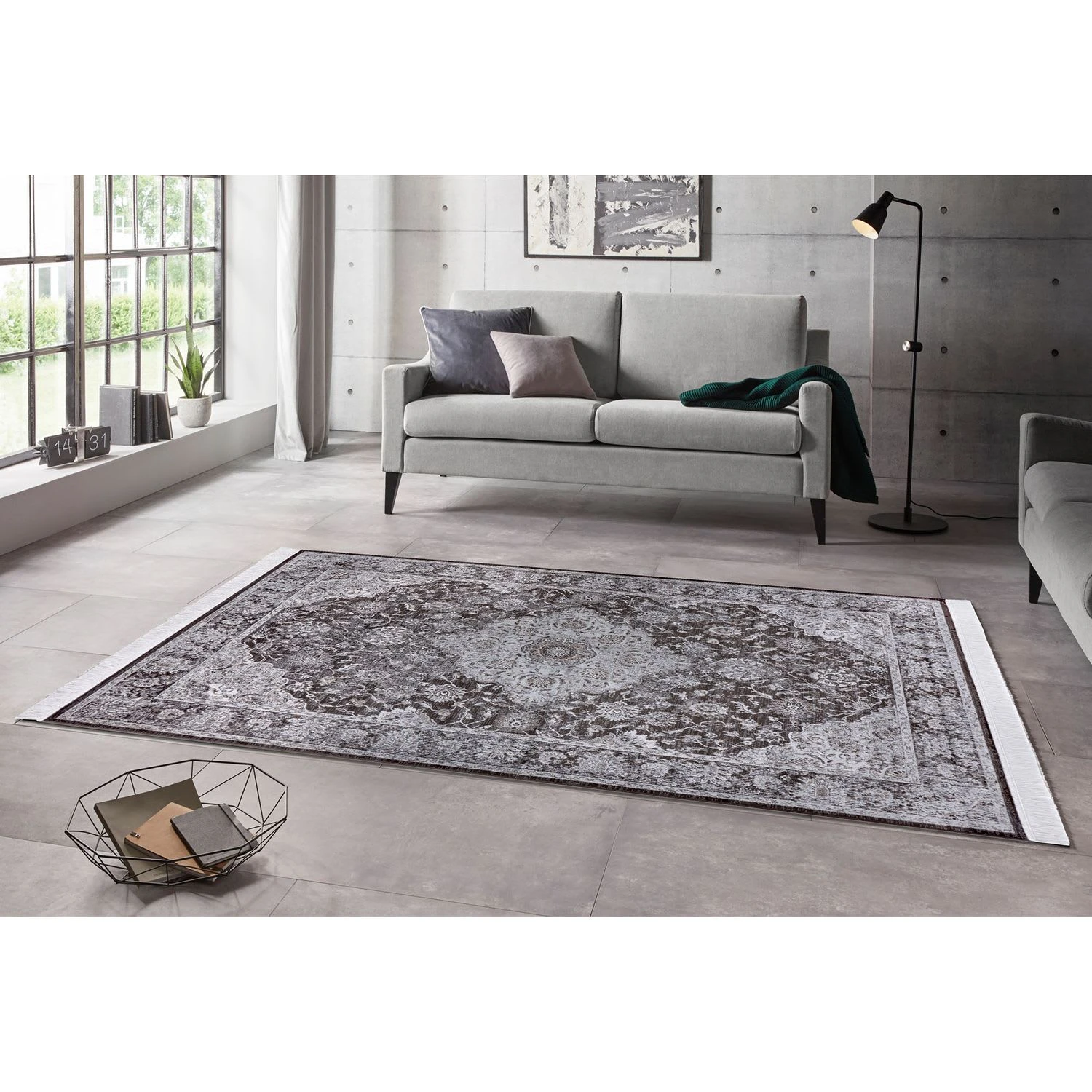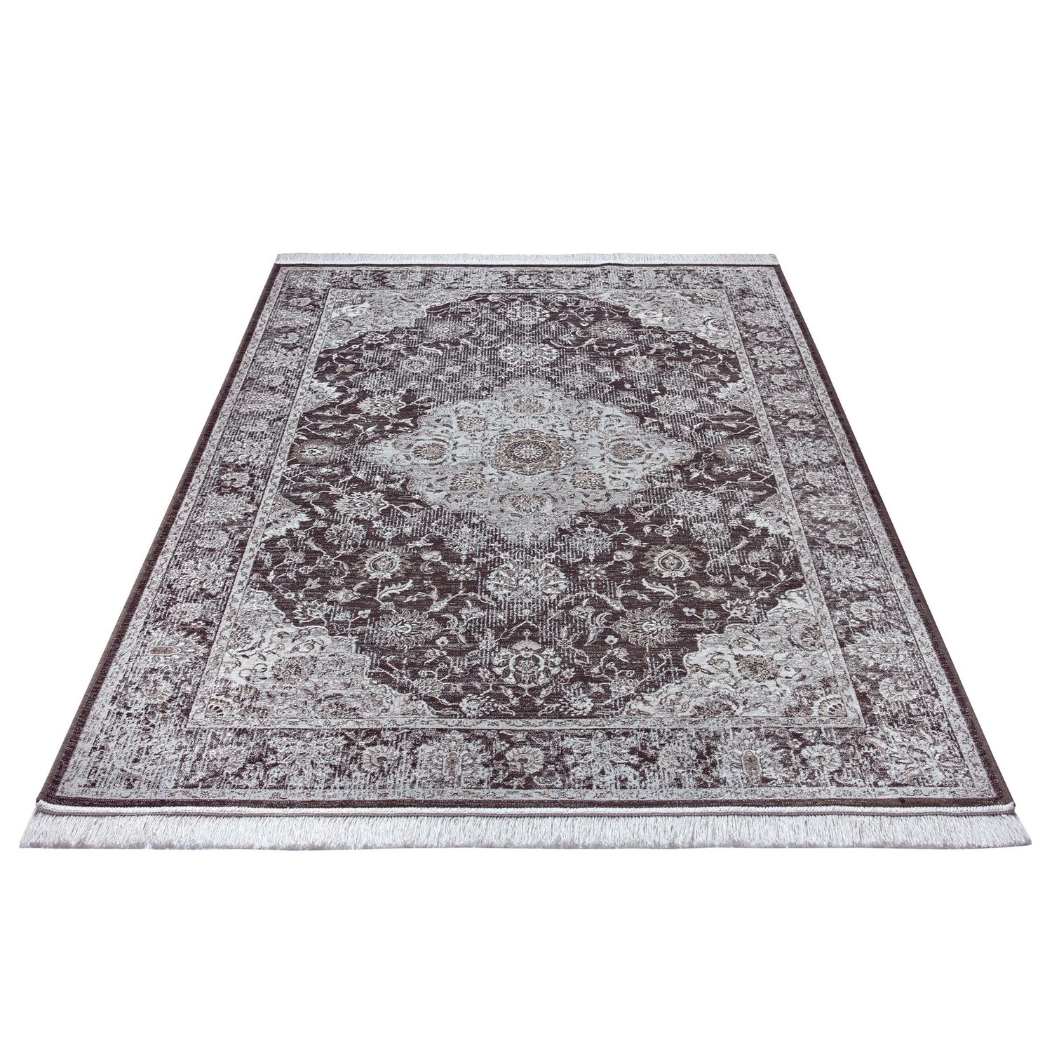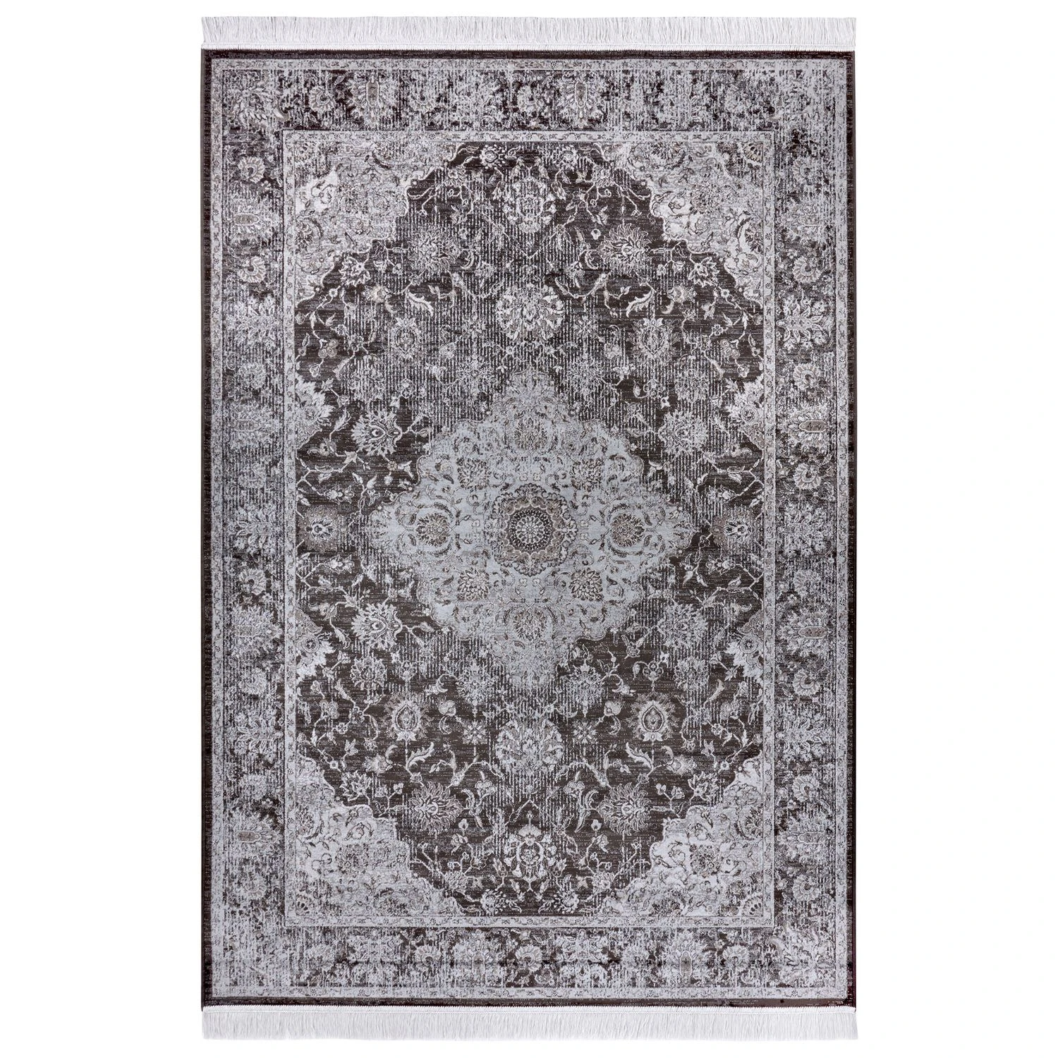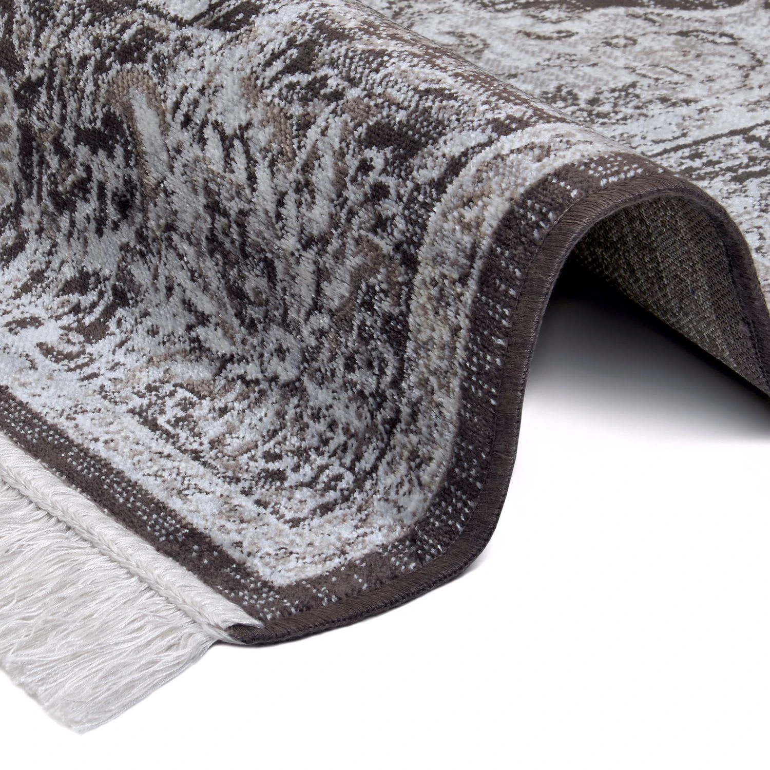 Samt Teppich Fransen Keshan Derya Silber Braun