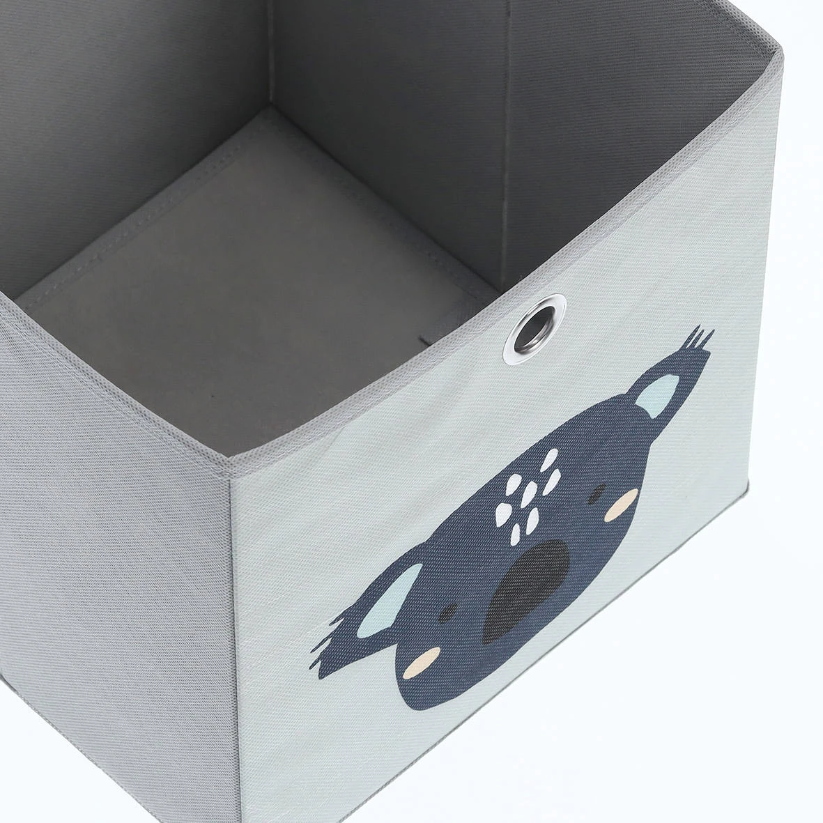 Der Textilbehälter für Spielzeug ist ein Muss in jedem Kinderzimmer. Es passt perfekt zu vielen Zusatzstoffen und trägt zur Aufrechterhaltung der Ordnung im Kinderreich bei. Eine Reihe von Behältern mit niedlichen Haustieren ist eine hervorragende Dekoration, die den Charakter des Innenraums des Kinderzimmers ergänzt. Der vorgestellte Behälter ist flach gefaltet, was die Aufbewahrung erleichtert.