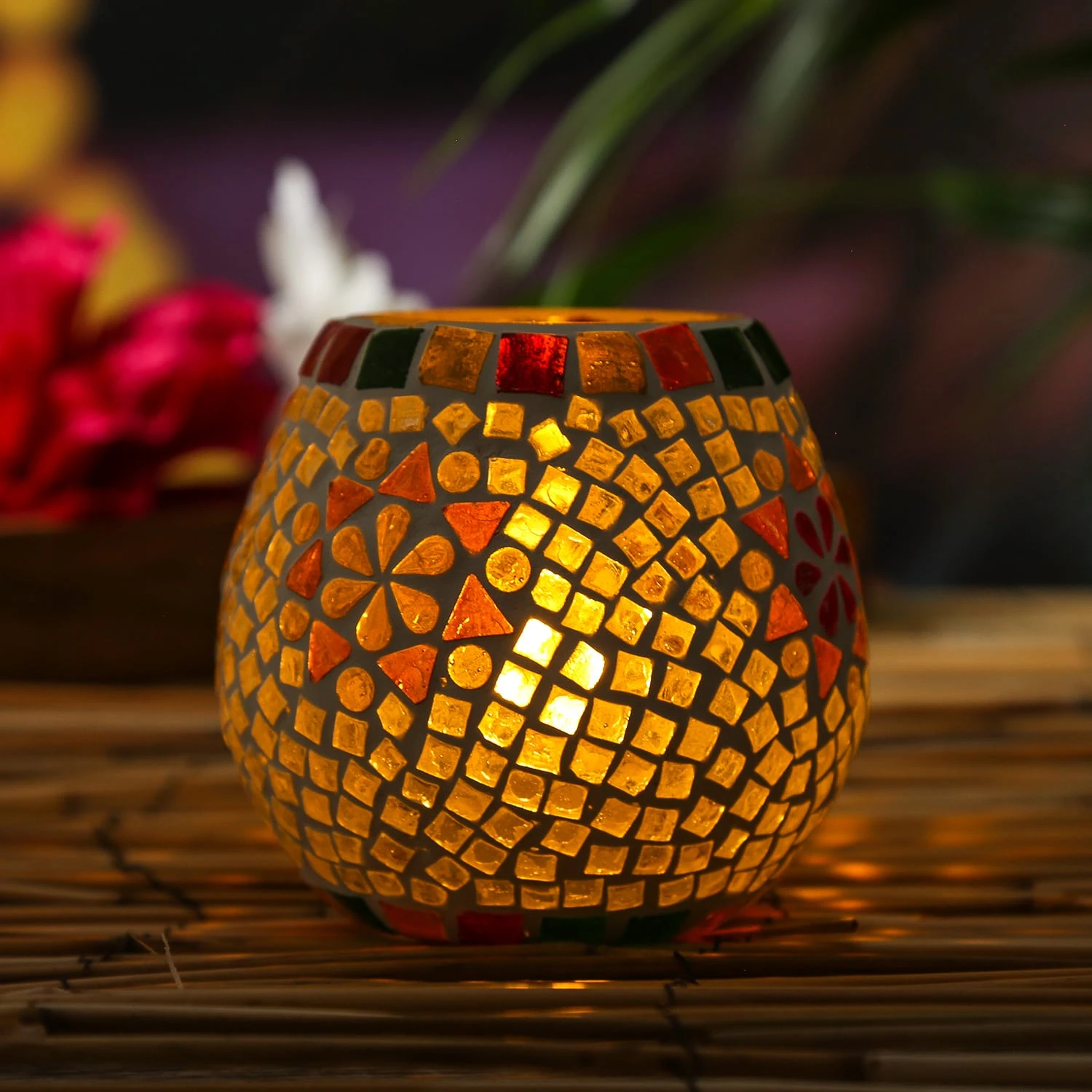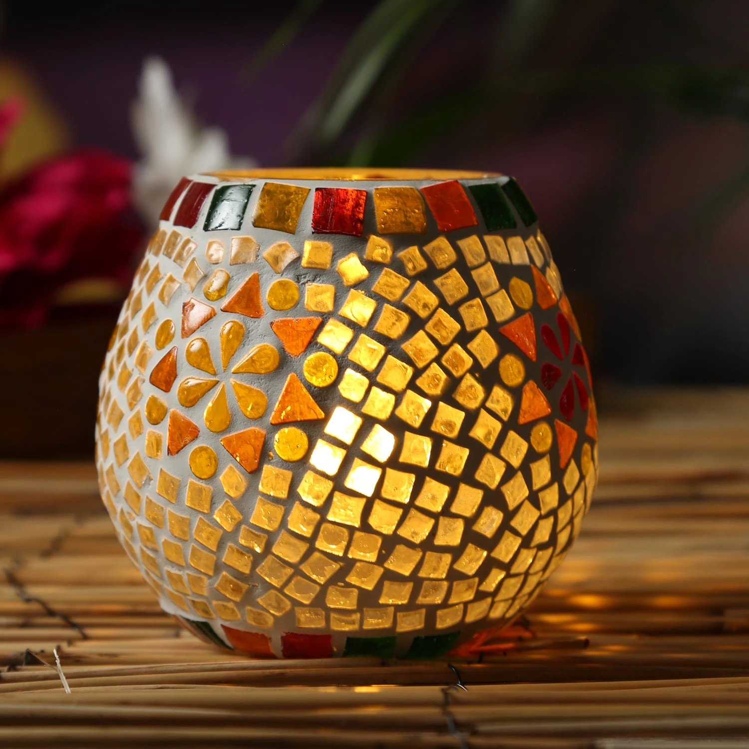 Windlicht Mosaik Glas – Teelichthalter – H: 11cm – D: 11cm – bunt